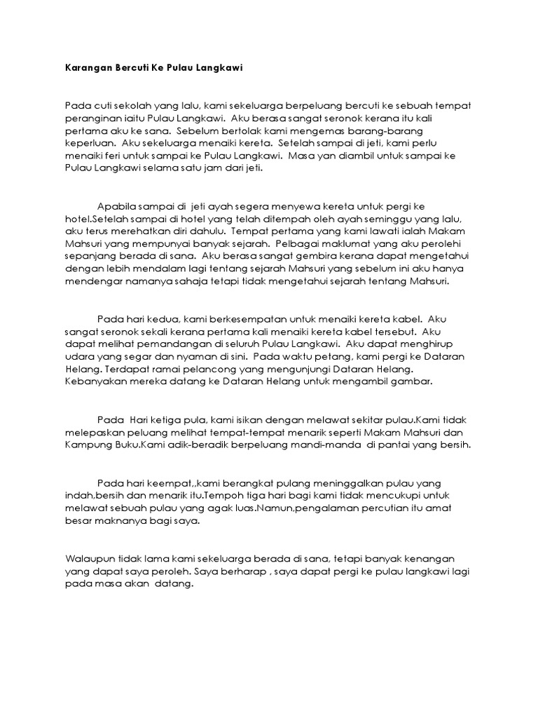 Karangan Bercuti Ke Pulau Langkawi Pdf